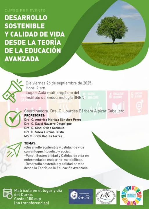 22 septiembre, 2025 Curso pre-evento Desarrollo sostenible y calidad de vida desde la teoría de la educación avanzada Los esperamos! #endocrinologiainen Categorizado en Sin categoría por Endocrinología el Sep 22nd, 2025.