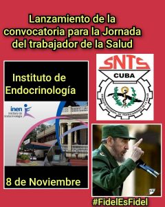 Lanzamiento de la Jornada del trabajador de la salud, desde el Instituto de Endocrinología el próximo 8 de Noviembre, homenaje a nuestro líder histórico Fidel Castro Ruz. Muchas felicidades a todos los trabajadores del INEN!