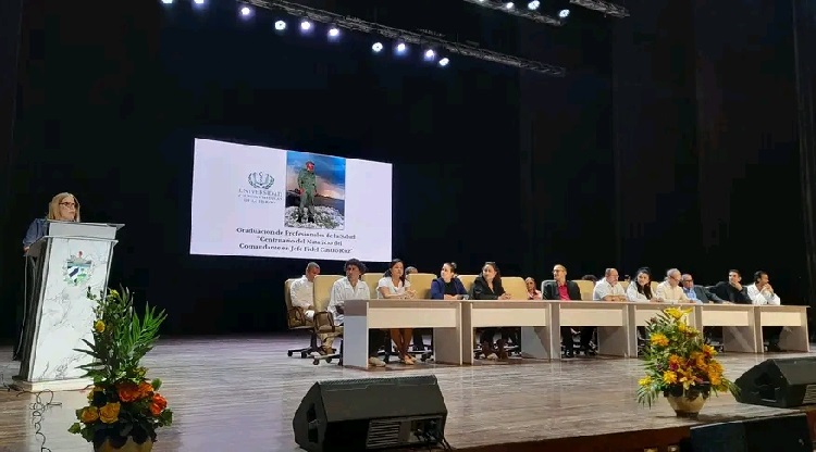 En acto central de graduación de la Universidad de Ciencias Médicas de La Habana (UCMH) correspondiente al curso académico 2024-2025, dedicada en esta ocasión al centenario del natalicio del comandante en jefe Fidel Castro Ruz, al aniversario 20 del Movimiento de Vanguardia “Mario Muñoz Monroy” y al 67 del Triunfo de la Revolución, nuevos profesionales de la salud recibieron en el Teatro “Karl Marx” su titulación en las carreras de Medicina, Estomatología, Enfermería, Tecnología de la Salud y de Técnico Superior de ciclo corto.