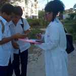 Estudiantes de primer año de la carrera de medicina junto a sus profesores en la batalla contra las arbovirosis que están afectando en estos momentos la salud de la población.