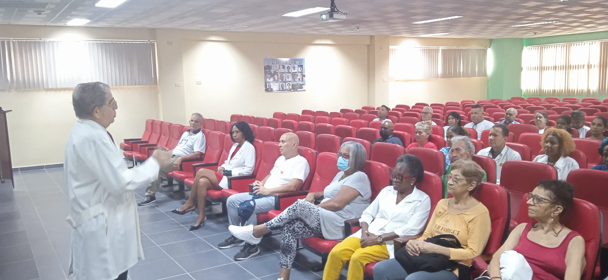 En la mañana de hoy continuando las actividades por el Día Mundial del Corazón, se reunieron en nuestro teatro presidido por la Ms. C Dra. Damaris Hernández Veliz, (Directora), cardiólogos, especialistas, invitados, pacientes y familiares dónde recibieron una conferencia por parte del Profesor Doctor en Ciencias Medicas Eduardo Rivas Estany Presidente de la Sociedad Cubana de Cardiología sobre como cuidar el corazón y mejorar la calidad de vida.