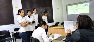 Alumnos del grupo 2.1 de la Facultad de Ciencias Médicas “Manuel Fajardo” de La Habana en la exposición oral de su trabajo.