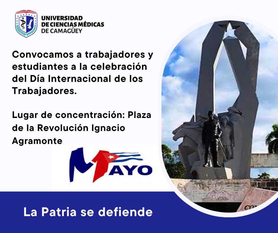 La dirección de la Universidad, junto a las organizaciones políticas y de masas (PCC, UJC, FEU y Sindicato), convoca a todo el colectivo a concentrarse el próximo Primero de Mayo en el lugar y hora habituales.