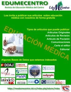 La Revista de Educación Médica del Centro (EDUMECENTRO) convoca a profesionales, docentes e investigadores del sector de la salud a publicar sus artículos de forma gratuita en su espacio editorial.